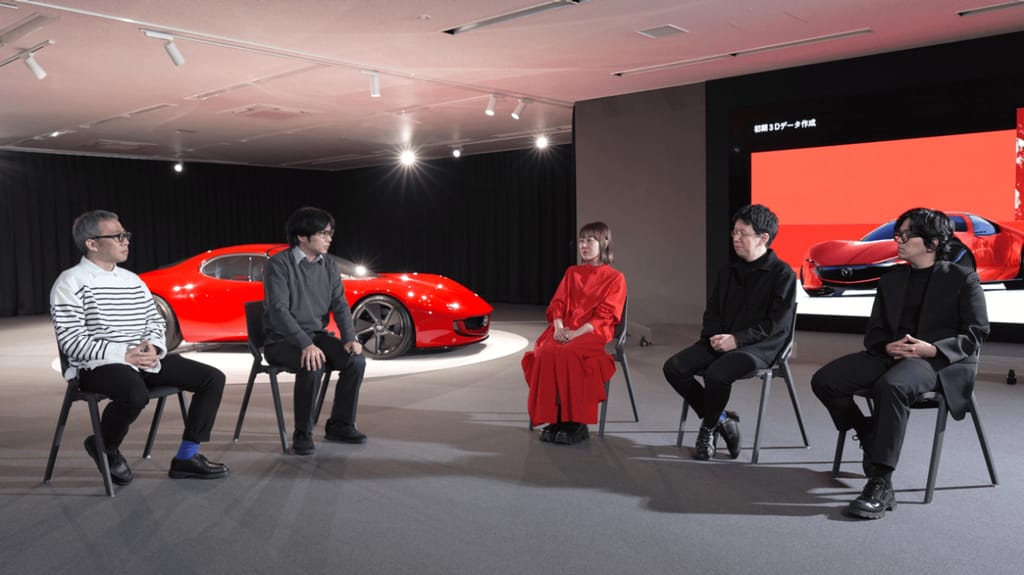 จากซ้าย: อิโตะรับผิดชอบโมเดลดิจิทัล ทาคาฮาชิรับผิดชอบภายนอก ยามาชิตะรับผิดชอบ CMF (สี วัสดุ และการเคลือบเงา) ฮามานางะ และอิวาคาวะรับผิดชอบภายใน