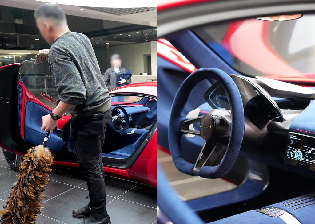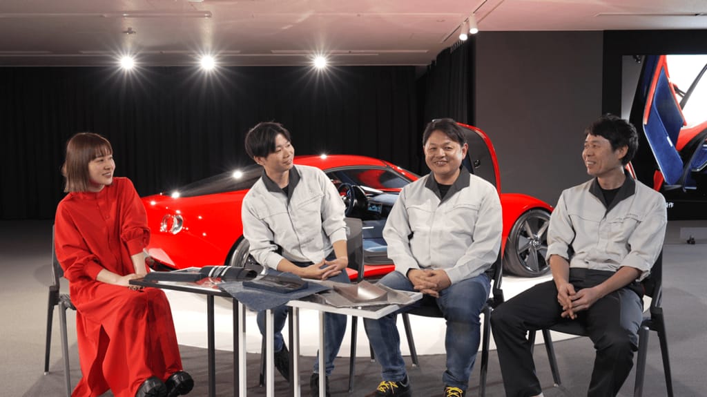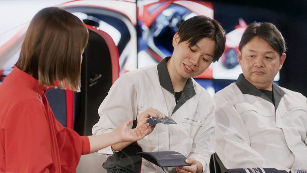 ยามาชิตะ: ด้วยแนวคิดรถสปอร์ตน้ำหนักเบา วัสดุเบาะนั่งจึงถูกผลิตขึ้นโดยใช้เทคนิคการถัก 3 มิติที่ทันสมัยและเพรียวบางกว่า (ทอให้เข้ากับรูปทรงของเบาะด้วยเส้นด้ายเส้นเดียว) ซึ่งทำให้เบาะดูมีสไตล์อย่างมาก อย่างไรก็ตาม นากายามะซัง ผู้จัดการทั่วไป บอกกับฉันว่า “เนื่องจากที่นี่คือฮิโรชิมา เราจึงต้องการใช้ผ้าเดนิม” เมื่อฉันได้ยินดังนั้น ฉันก็โกรธและแค้น เพราะฉันใช้ความพยายามอย่างมากเพื่อในที่สุดฉันก็ทำให้มันดูเท่ขนาดนี้ได้!