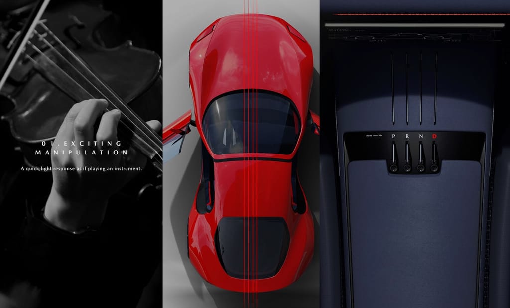 ในท้ายที่สุดเราก็มีไอเดียออกมาประมาณ 18 ไอเดียแต่ยังตัดสินใจไม่ได้ ดังนั้นเราจึงคิดว่า “ลองออกแบบให้สุดโต่งดูสิ” ทีมงานได้พูดคุยกันว่ารถคันนี้จะมีหน้าตาเหมือนไวโอล่า ซึ่งเป็นเครื่องสาย เราก็เลยออกแบบโดยอิงจากลวดลายที่เหมือนสาย string เป็นหลัก
