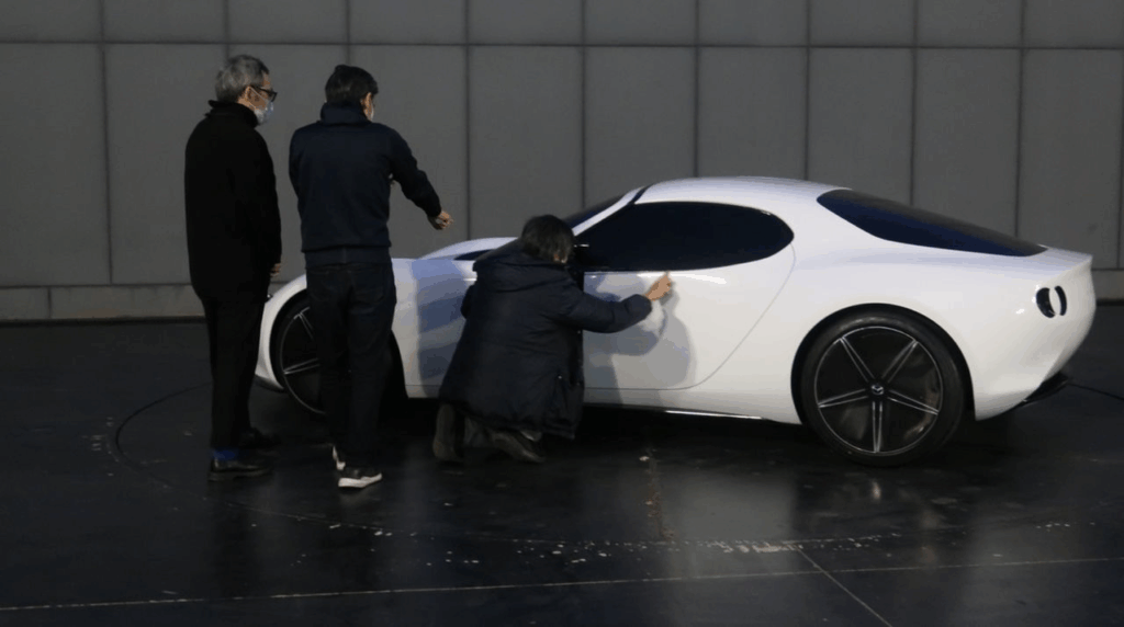 เพื่อพิสูนจ์เอกลักษณ์ของงานออกแบบรถ เราจึงสร้างโมเดล 1/1 (โมเดลขนาดเท่าคนจริง) ขึ้นมา ตอนนั้นผมคิดในใจว่า “เจ๋งดี” แล้วคนอื่นๆ ในบริษัทก็พูดแบบเดียวกัน เพราะเมื่อพิจารณาแบบจำลองขนาด 1/1 เสน่ห์ที่ไม่อาจถ่ายทอดผ่านแบบจำลองสามมิติหรือแบบจำลองขนาดเล็กได้ กลับปรากฏชัดขึ้นในทันทีที่แบบจำลองมีขนาดเท่าจริง